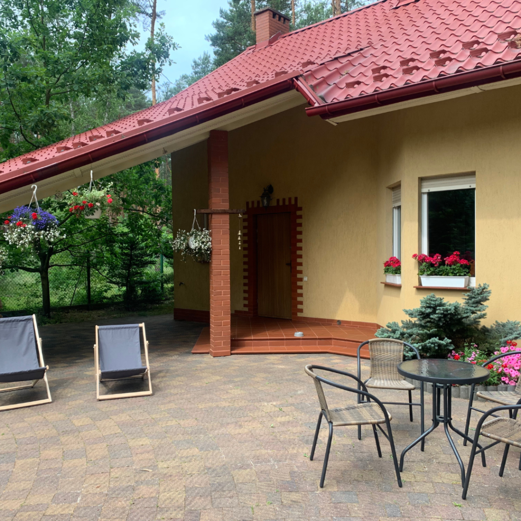 „Cudowne miejsce do totalnego wyciszenia się i ucieczki od miejskiego zgiełku ❤ cisza ,spokój , dookoła las i śpiew ptaków. Dom w pełni wyposażony z dużym ogrodzonym terenem więc nie trzeba się martwić że pieski gdzieś uciekną a i one zadowolone z możliwości ciągłego biegania i basenu. Duży teren do spacerów, niedaleko jezioro, czego chcieć więcej”